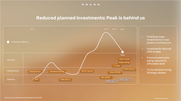 观察沃尔沃的研发投入曲线,他们这几年已经搞出了 SPA3 平台、自研电机、两座新工厂、CTB 和大压铸,新车型也是陆续有来。