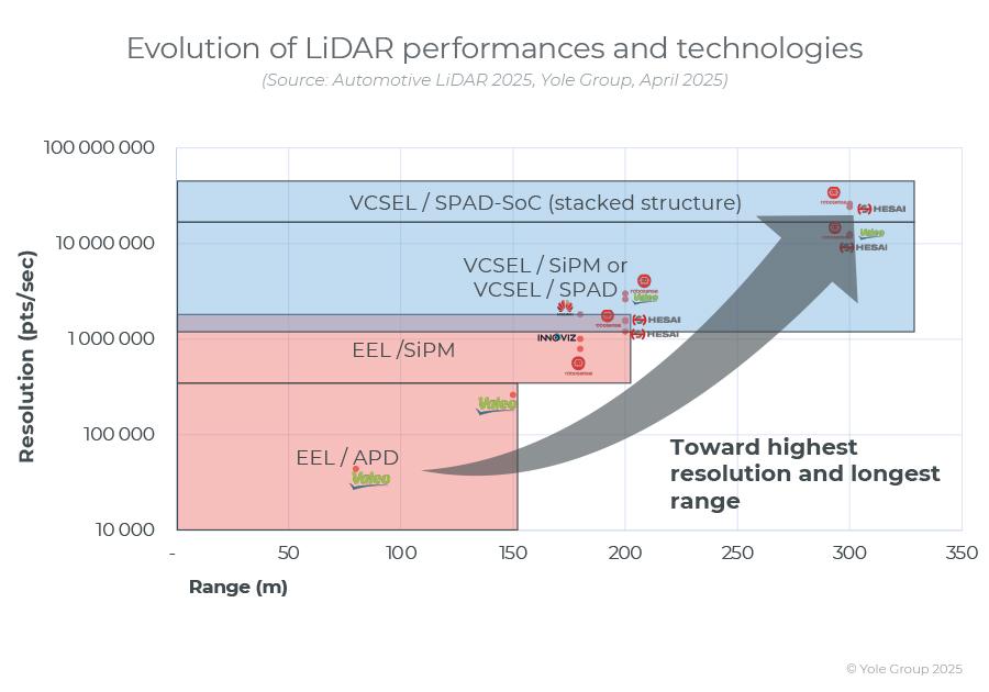 “随着激光雷达产量的增加以及与大规模生产兼容的技术的发展,激光雷达的平均售价正在迅速下降,2025 年后,一些入门级激光雷达的价格将在 200 美元左右。”Yole表示。