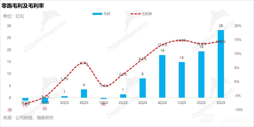 零跑之前指引 2025 年全年毛利率 14%-15%,2025 年全年净利润 5-10 亿元,2025 年全年销量 58-65 万辆。
