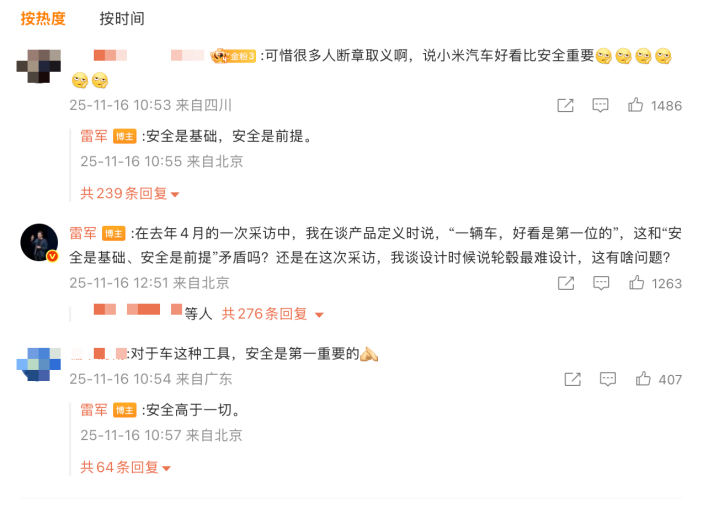 对此,雷军也指出,“网上有不少人断章取义、歪曲抹黑”,并强调,“安全是基础,安全是前提”、“安全高于一切”。