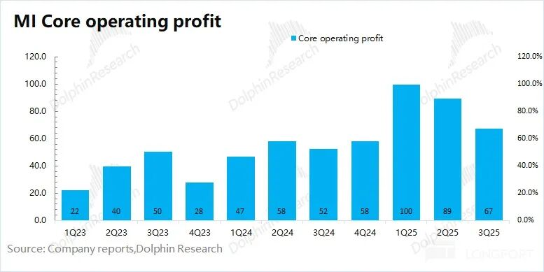 其中小米公司传统业务的核心利润约为 60.3 亿元,汽车业务首次实现盈利为 6.8 亿元。公司本季度核心利润的环比下滑,主要是受传统业务利润缩水的影响。
