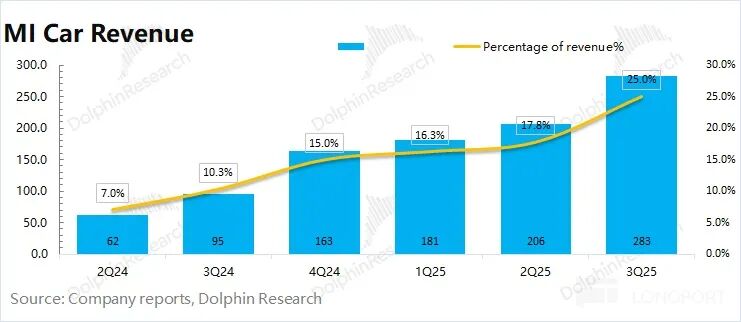 本季度汽车业务毛利率继续提升至 25.5%,市场预期(25.6%)。不过环比上季度小幅下滑,主要是高毛利率的 SU7 Ultra 占比减少。
