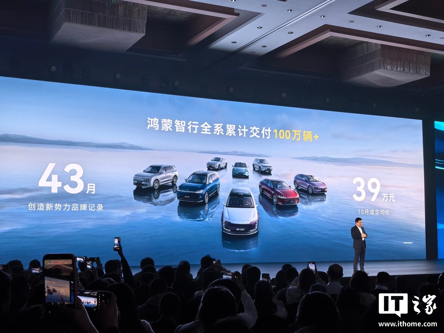 IT之家 11 月 20 日消息,在今日的鸿蒙智行享界 S9 新品发布会上,华为常务董事、产品投资委员会主任、终端 BG 董事长余承东宣布,鸿蒙智行全系累计交付 100 万辆 +,用时 43 个月,创造新势力品牌纪录。