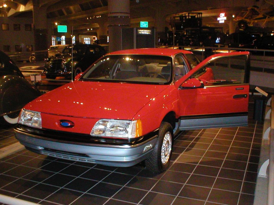 1986款福特Taurus,门把手被设计成黑色,与整车的红黑配色相得益彰。