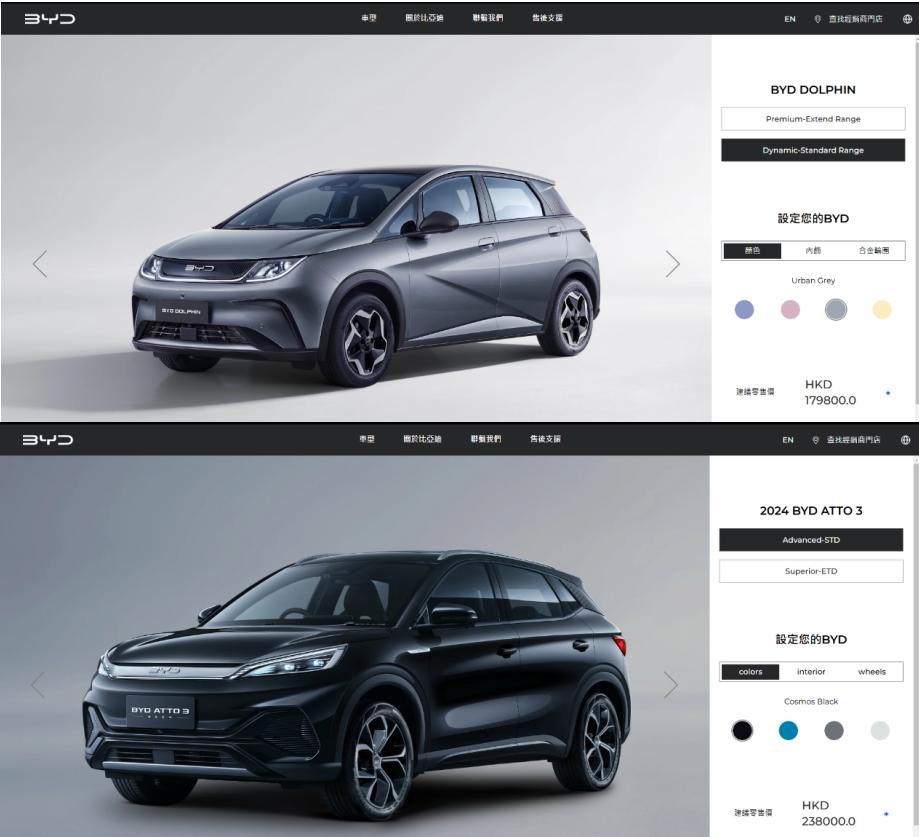 在内地只需几万元就能买到的海豚,在香港起售价需要约18万港元,元PLUS的价格同样比内地贵出一截。(图/比亚迪香港官网截图)