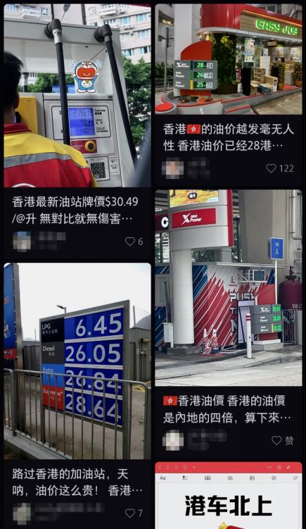社交媒体里,不少人对香港的油价感到震惊,这些帖子的下方往往有“为什么不开电车”的询问。(图/小红书截图)