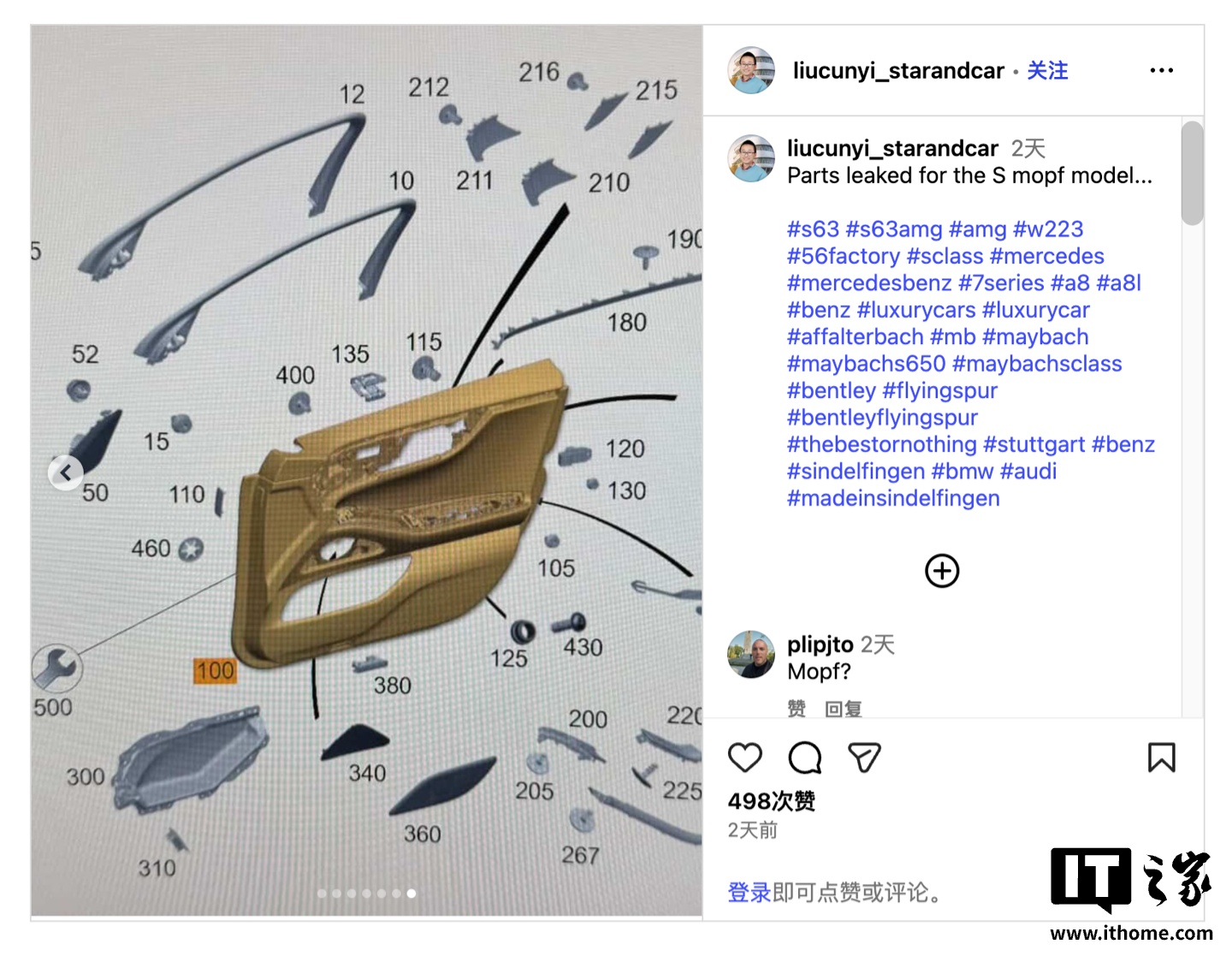 IT之家 11 月 25 日消息,近日,博主 @liucunyi_starandcar 在 Instagram 上分享了一些疑似新款奔驰 S 级生产零部件的图纸。