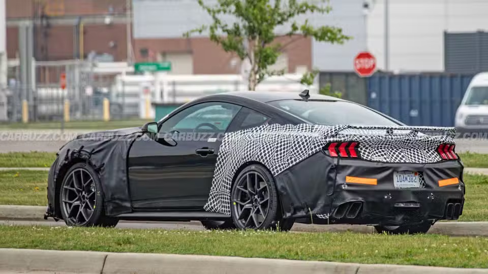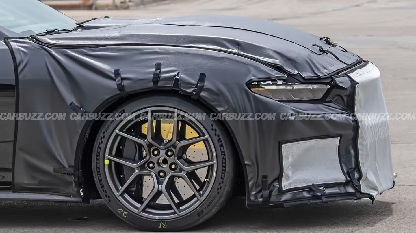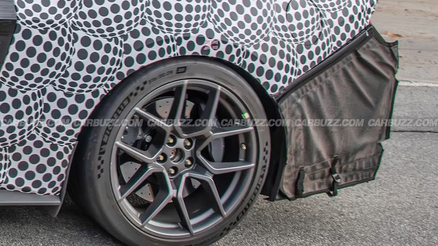 谍照抓拍到了两种轮胎配置,其中一种为专注于赛道的米其林 Pilot Cup 2R 轮胎。规格方面,前轮为 305/30ZR20,后轮达到了 315/30ZR20,虽然宽度与 Dark Horse 处理套件版持平,但直径增加了一英寸。