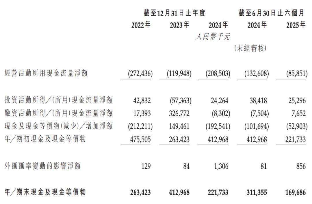 截至2025年6月30日,公司现金及等价物仅为1.70亿元。相比2024年末的2.22亿元,金额再次下降。