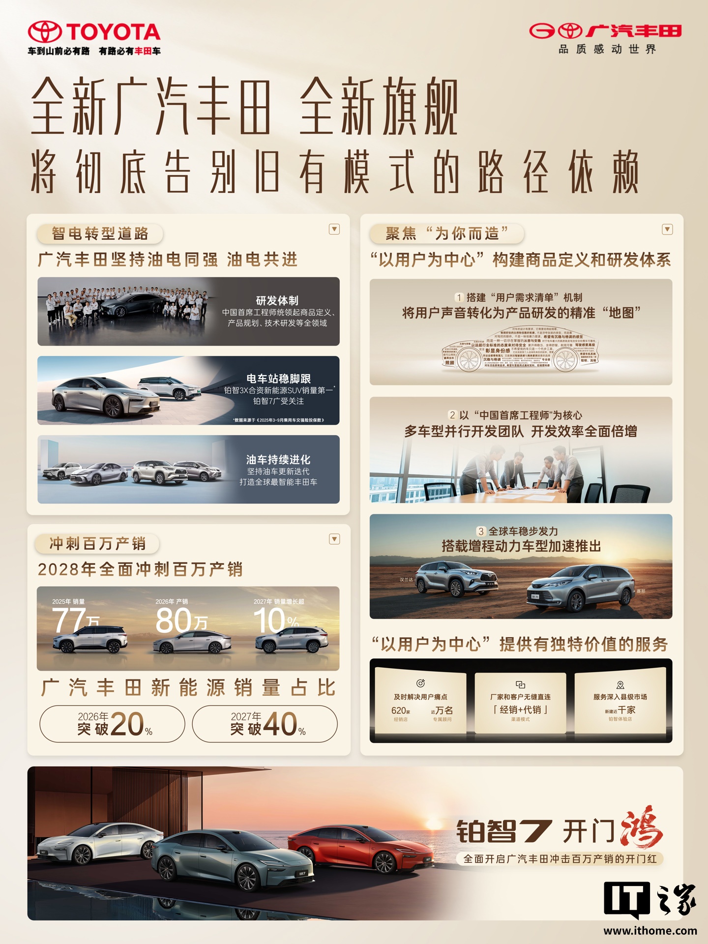 广汽丰田还宣布,在 2025 广州车展公开亮相的铂智 7 纯电轿车计划于 2026 年第一季度正式上市。