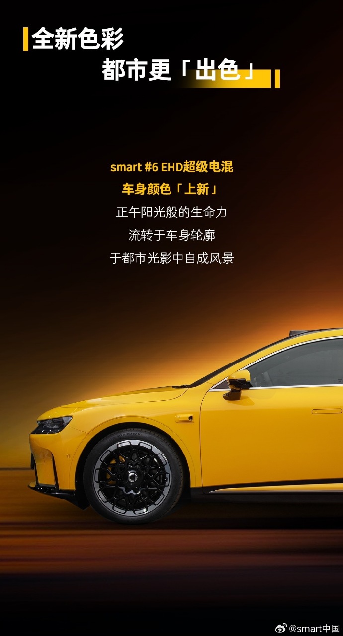 该车车身尺寸为 4906*1922*1508mm,拥有 2926mm 全系最长轴距,采用动感十足的掀背设计,自带多档位可变运动尾翼。此外,该车还采用全新的亮黄色设计。