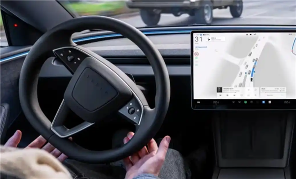在车主使用FSD期间,他双手没有扶在方向盘上,且车机未有让他注意路况的提示,已经无限接近于自动驾驶。