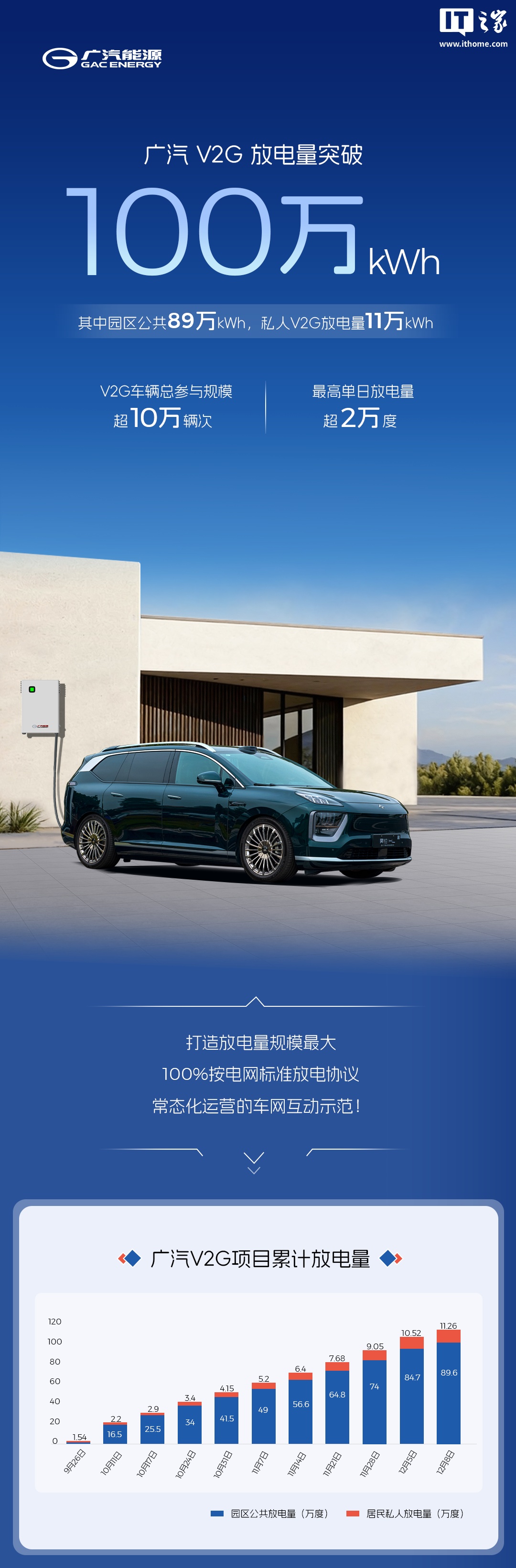 IT之家 12 月 9 日消息,广汽能源官方今日宣布,广汽 V2G 项目累计放电量突破 100 万度(100 万 kWh)。