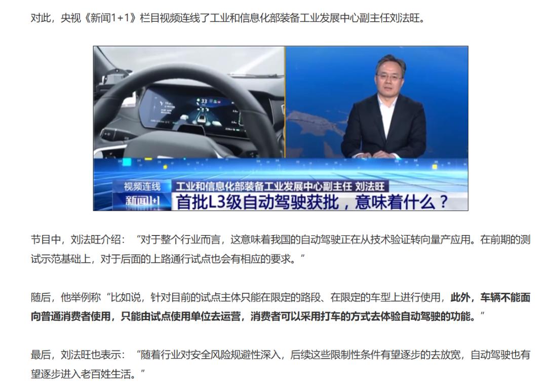 这次L3的真正到来,算是政策和技术一块儿发力的结果。2023年底的时候,《关于开展智能网联汽车准入和上路通行试点工作的通知》这些政策一出来,中国的L3自动驾驶商用化才算有了明确的规矩,正式进入“能可劲儿试,但有法可依”的阶段。