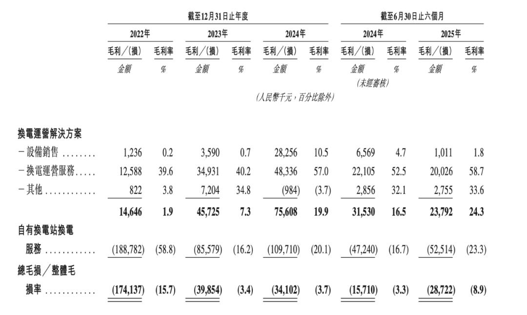 而自有换电站换电服务的收入却一直未能覆盖成本。尽管换电站前期建设为一次性固定资产投入,且相关成本逐步均摊后毛损率已有所下降,但因市场竞争加剧导致相关业务收入下滑,今年上半年,该项业务毛损率仍达23.3%,同比提升6.5个百分点。