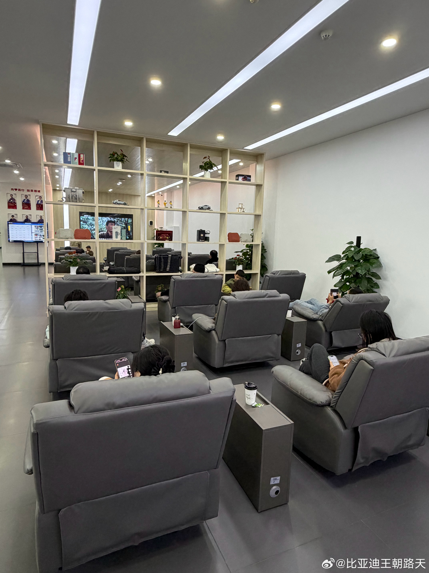 另外,比亚迪王朝还为用户提供了休息室,预计可以在此喝茶休息看电视。
