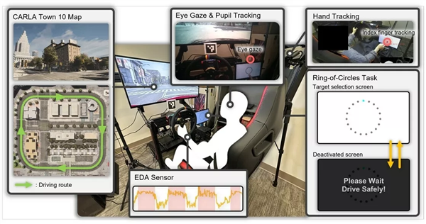 研究人员选取了16名受试者,让他们在高仿真驾驶模拟器中完成两项测试,也就是专注驾驶、驾驶同时操作触屏执行常见任务,同时追踪记录受试者的眼球运动、手部动作、瞳孔扩张程度以及皮肤电导率等多项指标。