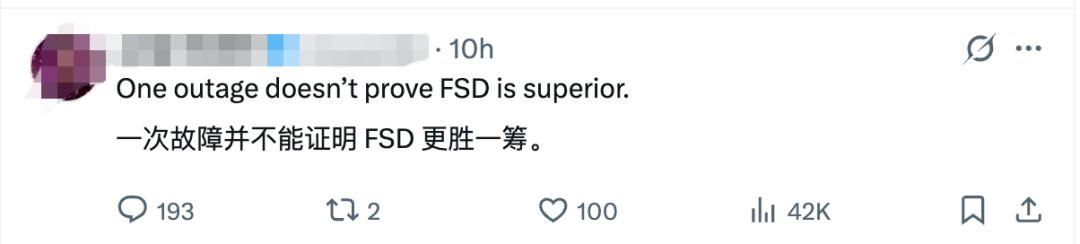 但也有网友认为,一次故障并不能证明FSD更强。
