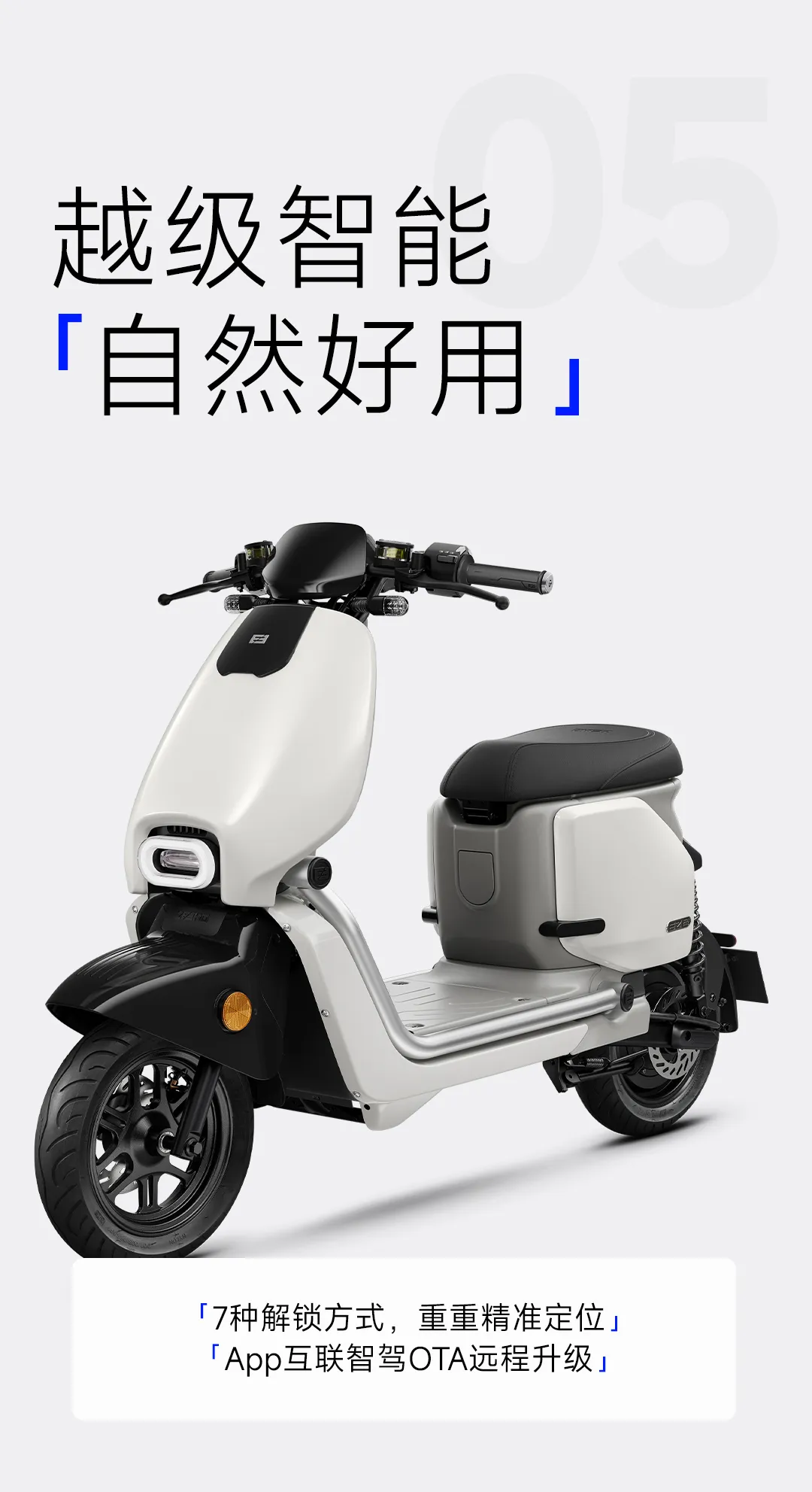 它采用了全新双边环绕式车架,宣称超 10000km+ 耐久测试,配备「摩托级液压双筒减震、五级可调后减震」,配备 6.2 英寸 LCD 全彩屏、无损高清扬声器。