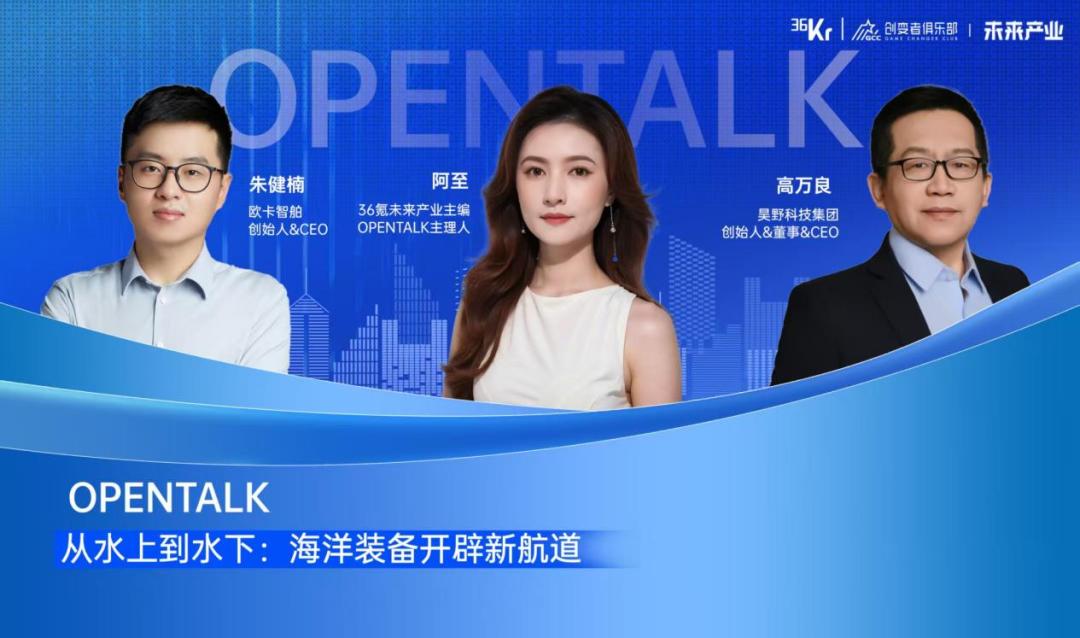 2025年12月17日,36氪举办了以「从水上到水下:海洋装备开辟新航道」为主题的OpenTalk直播活动,特别邀请欧卡智舶创始人&CEO朱健楠、昊野科技集团创始人&董事&CEO高万良作为本场分享嘉宾,两位就智能船舶、水面无人驾驶系统、水中装备、水下推进器、新能源船舶动力系统等热点话题展开了深入分享,并与观众进行了在线互动。