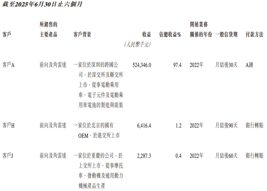 然而,高增长背后隐忧凸显。与许多智能驾驶供应链企业类似,承泰科技面临严重的客户集中风险,其绝大部分收入来源于客户A(比亚迪),且依赖程度持续加深,2025年前6月该比例已升至97.4%。