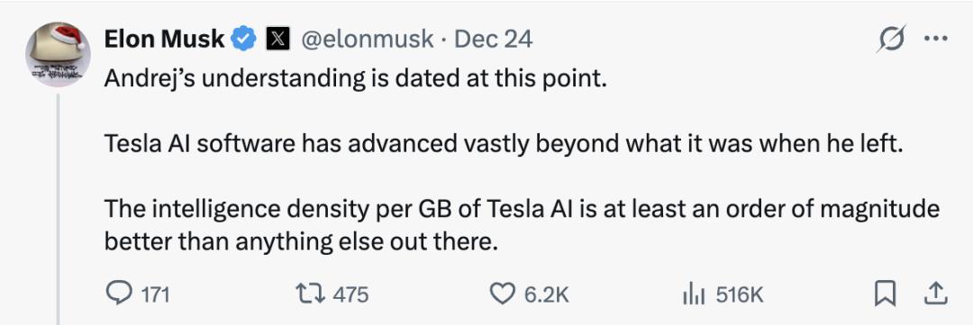 最近,马斯克在X上公开回应了好兄弟、特斯拉前AI负责人安德烈·卡帕西(AndrejKarpathy)的相关观点。