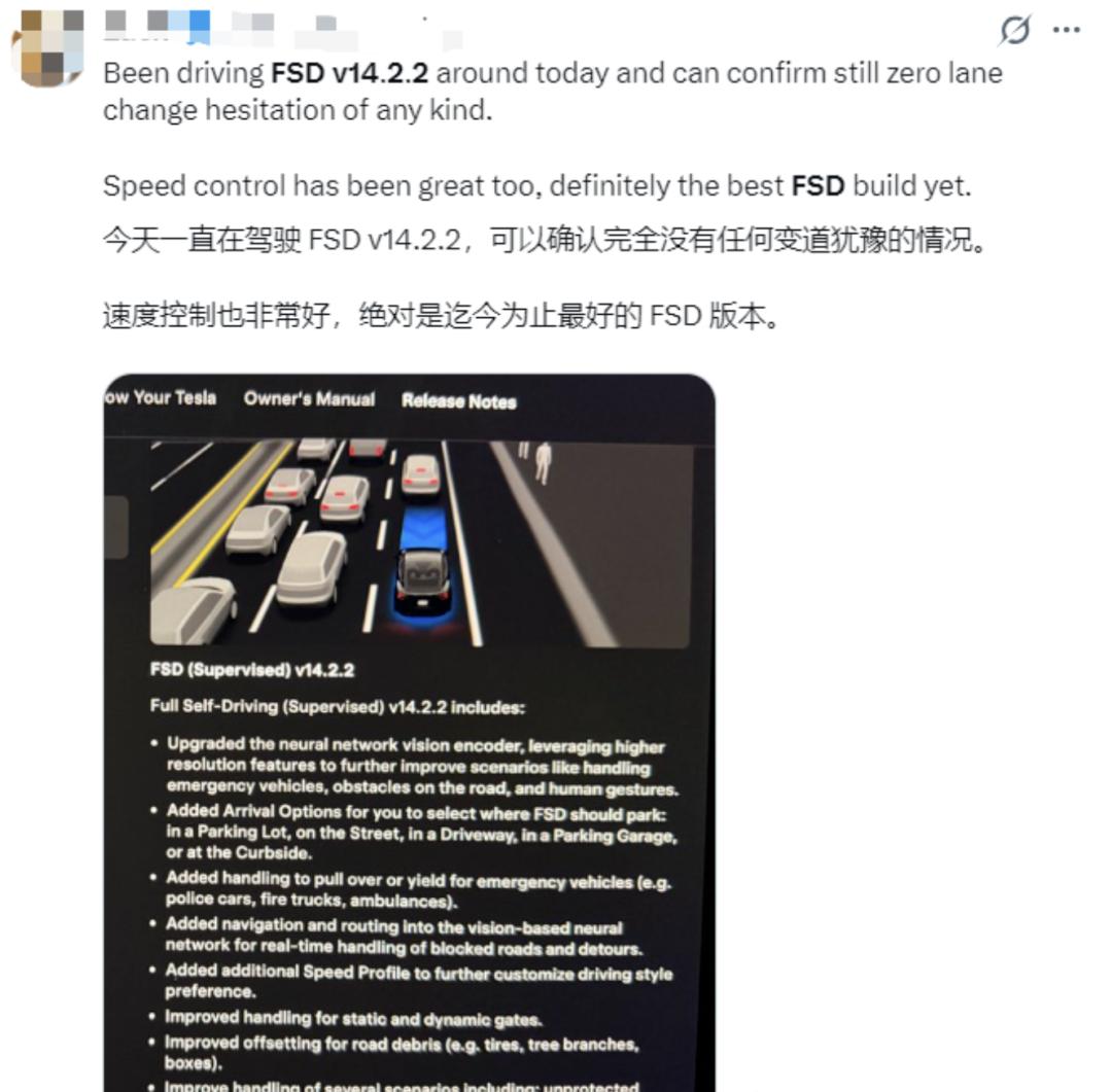 当然,FSD v14.2.2不是独属于Jim Fan的专属礼物。在陆续收到新版FSD推送后,特斯拉车主们的反馈也迅速刷屏——一句话总结:玩疯了。