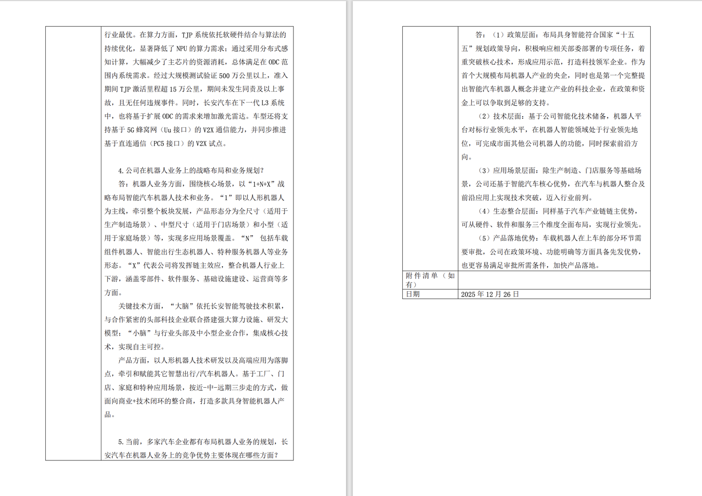 获批车型经过大规模测试验证 500 万公里以上,准入期间 TJP 激活里程超 15 万公里,期间未发生同责及以上事故,且无任何违规事件。同时,长安汽车在下一代 L3 系统中,也将基于扩展 ODC 的需求来增加激光雷达。车型还将支持基于 5G 蜂窝网(Uu 接口)的 V2X 通信能力,并同步推进基于直连通信(PC5 接口)的 V2X 试点。