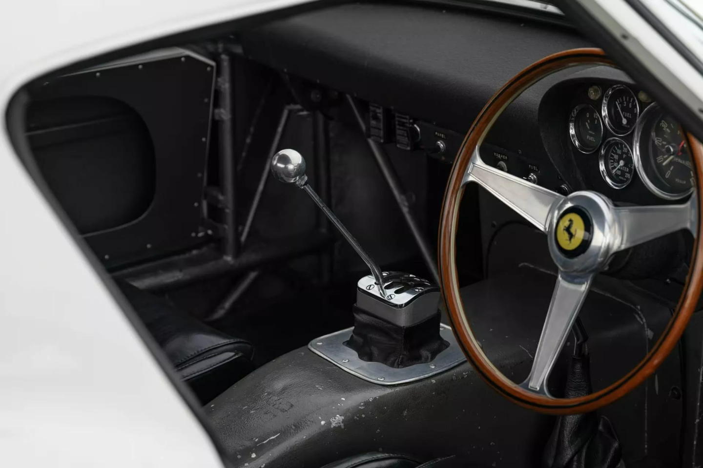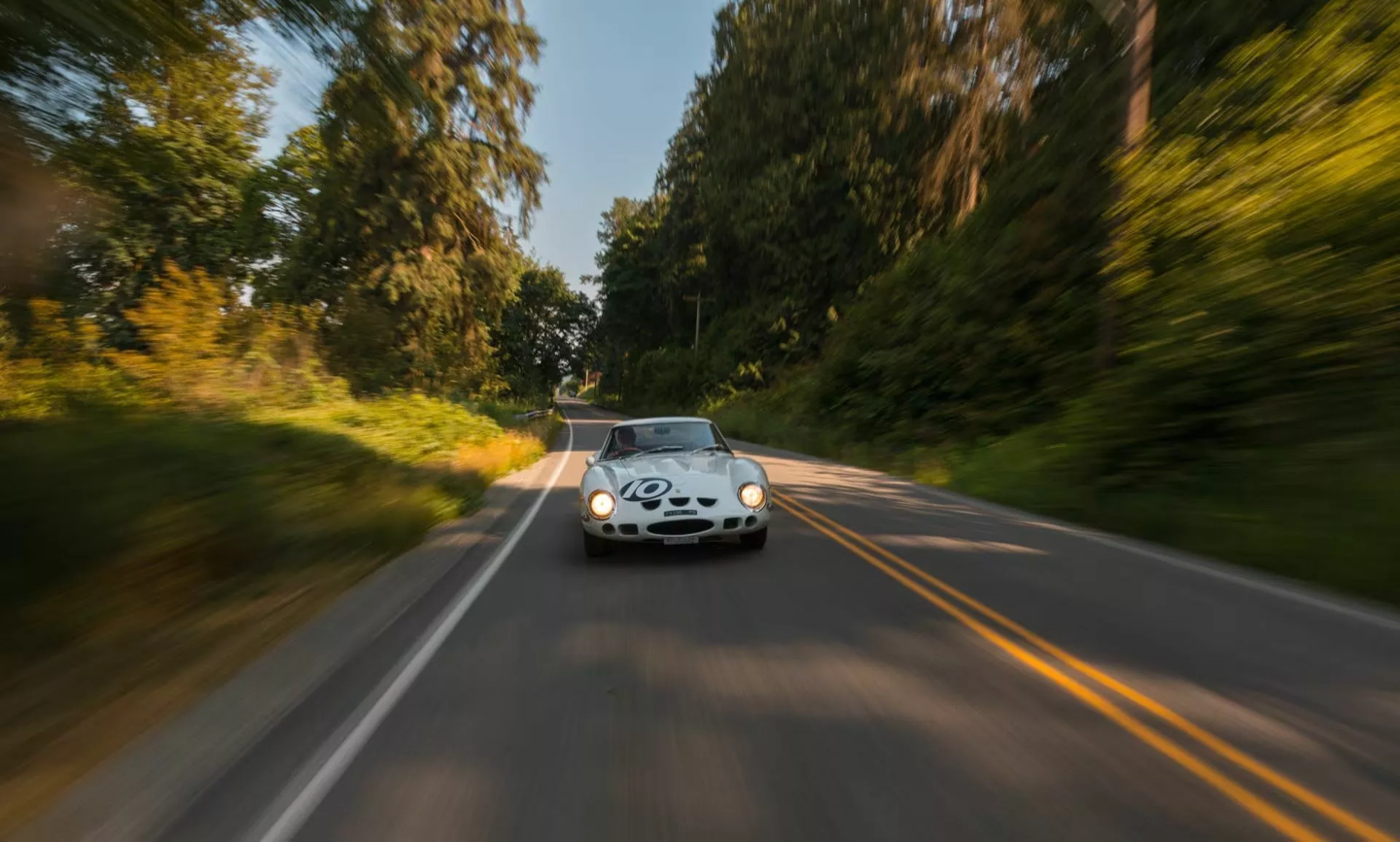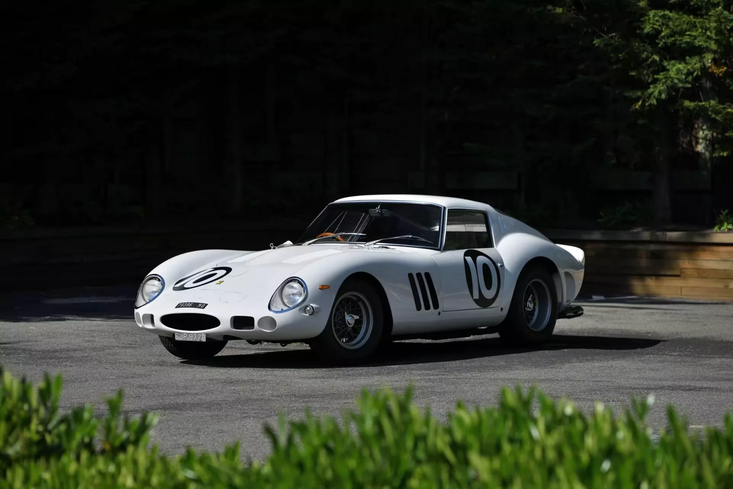 这辆白色 250 GTO 拥有深厚的赛道血统。该车首任车主为英国车队老板 John Coombs,曾由 Jack Sears、Graham Hill 和 Richie Ginther 等传奇车手驾驶。