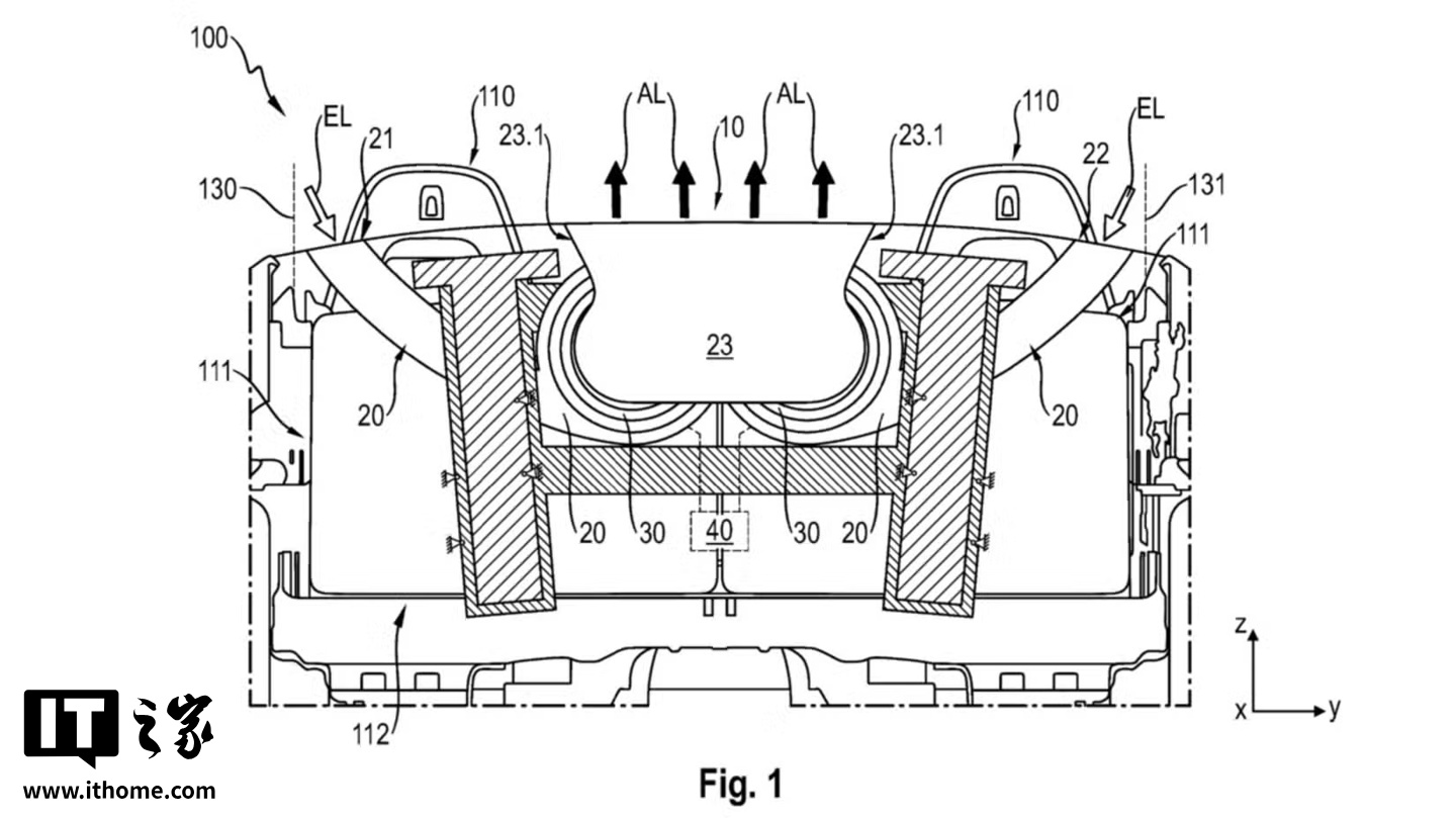 随后,气流会通过风道进入中央区域,这里安装有一台或两台驱动径向风扇的电机。这类风扇的原理与汽车空调系统的鼓风机类似,甚至和笔记本电脑里的微型风扇原理相通。风扇的作用是调节进气量的大小,从而确保车辆在任何行驶速度下,都能提供理想的气流量。风扇将气流通过位于车辆中央的出风口吹出,而这个位置恰好是传统实体风挡的安装处。
