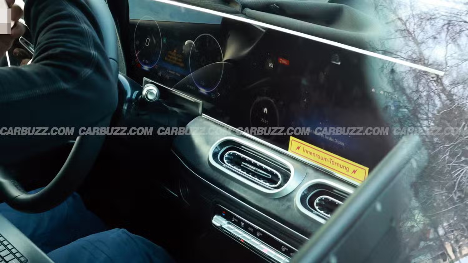 内饰方面,虽然此次谍照未直接展示内饰,但在早前的近距离拍摄中,新车座舱细节已显露。新款 AMG GLE 将弃用现款的分体式设计,转而采用一块尺寸更大的无缝双联屏。