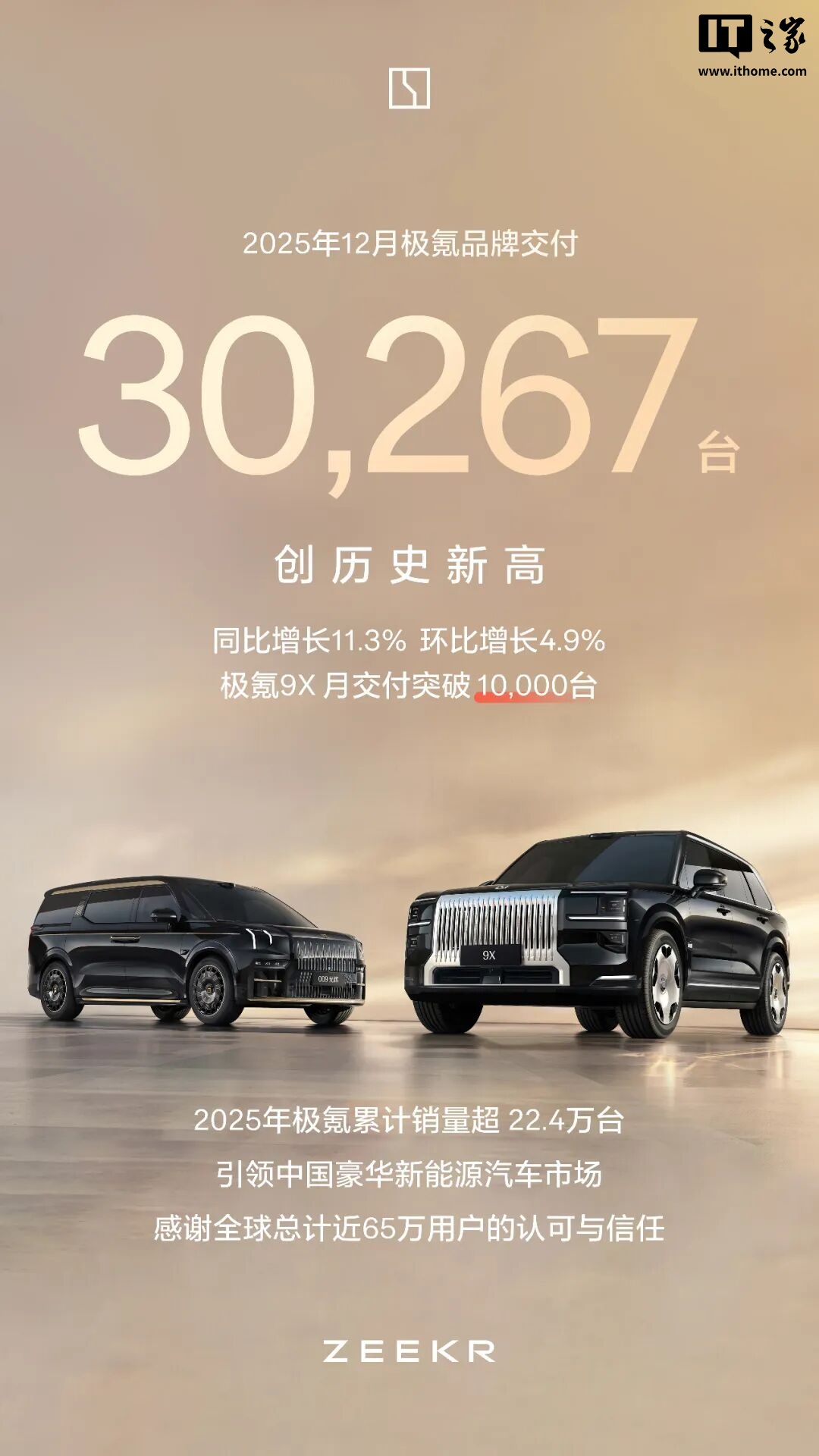 IT之家 1 月 1 日消息,极氪今日官宣,2025 年 12 月单月交付首破 3 万大关,实现同环比双增长,再创历史新高。