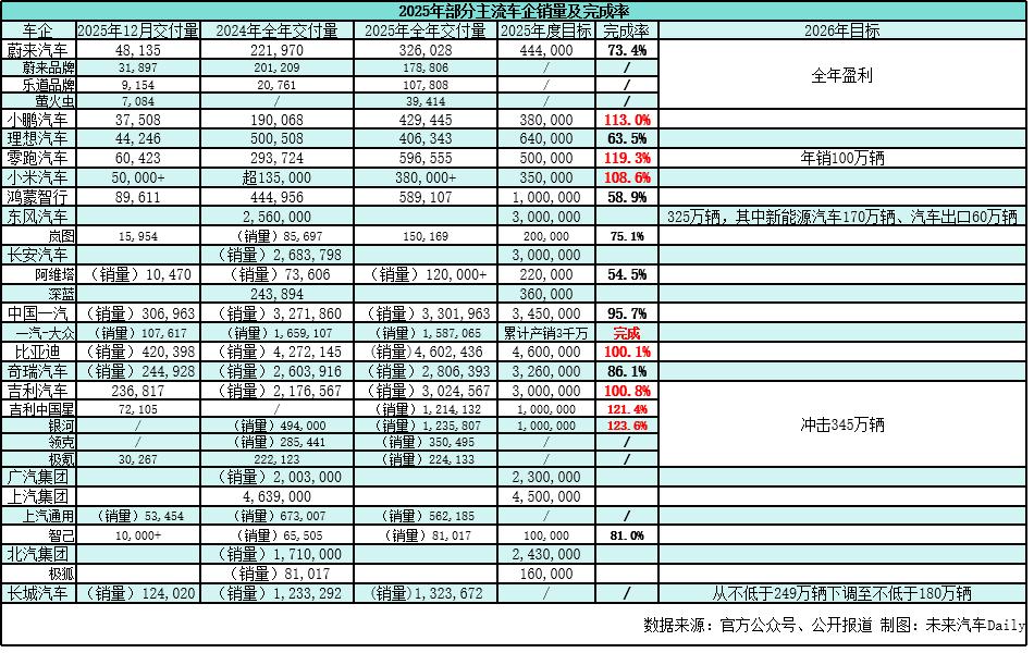 小米凭借SU7/YU7两款车创下38万年销成绩,小鹏年销42.9万,均超额完成目标。