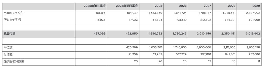 其实在销量公布前几天,特斯拉就已十分罕见地在官网发布了20家分析师的预测汇总。
