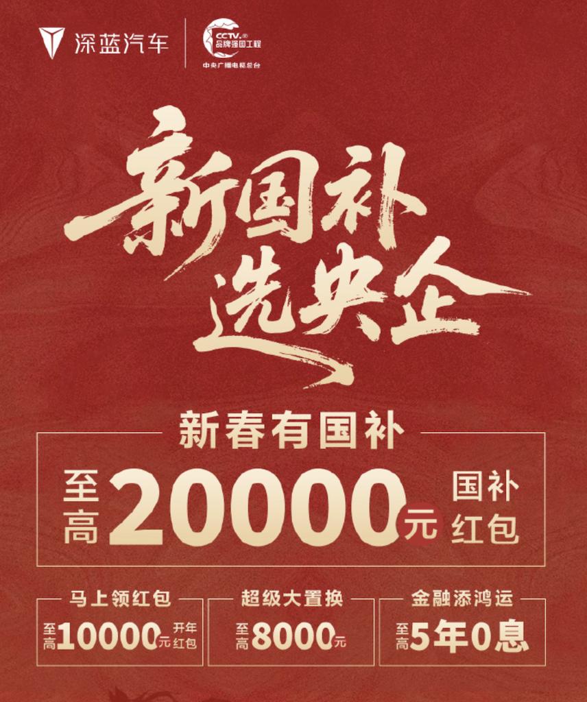 国内传统车企方面,长安汽车对深蓝旗下多款车型给出开年红包与置换补贴,以及至高5年0息等多种优惠方案。