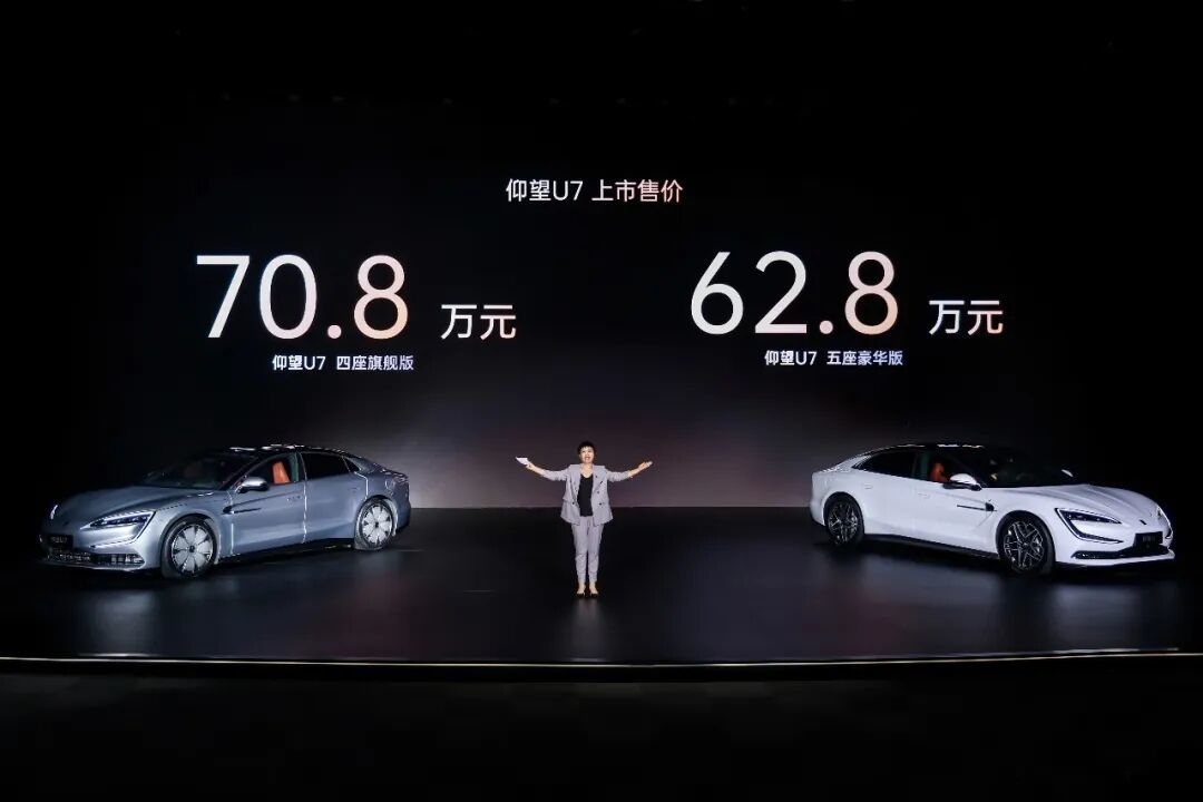 今年3月27日,仰望U7纯电插混双旗舰正式上市,油电同价,四座旗舰版70.8万元起,五座豪华版起售价62.8万元。该车首发搭载电悬架云辇-Z,开启新能源汽车四电时代。