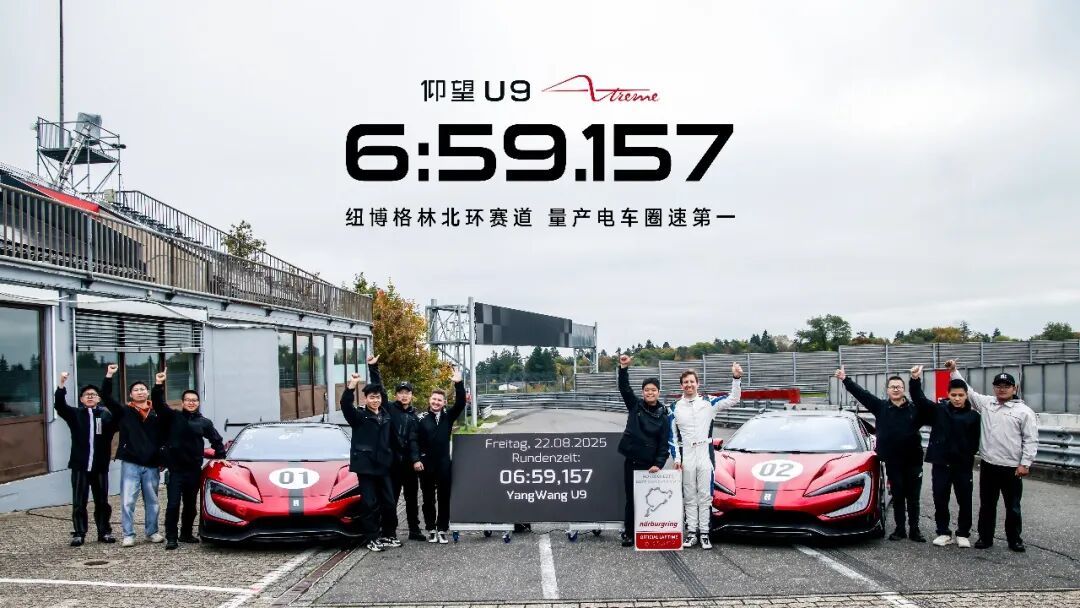 在德国ATP测试场,继8月打破量产电动车极速记录后,U9X在9月又以496.22km/h的极速实测成绩打破全球量产车汽车极速记录;随后,仰望U9X在纽北以6分59秒157的成绩取得了量产纯电车型第一的成绩,并取得了纽北认证正式登上纽北官方圈速榜。