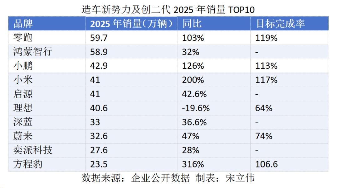 这一年里,零跑(09863.HK)把年销量拉到接近60万辆,鸿蒙智行以“五界”逼近同一量级。与此同时,40万辆成为一条清晰的分界线,一批新势力站上新台阶,也有企业在目标与现实之间被迫修正节奏。