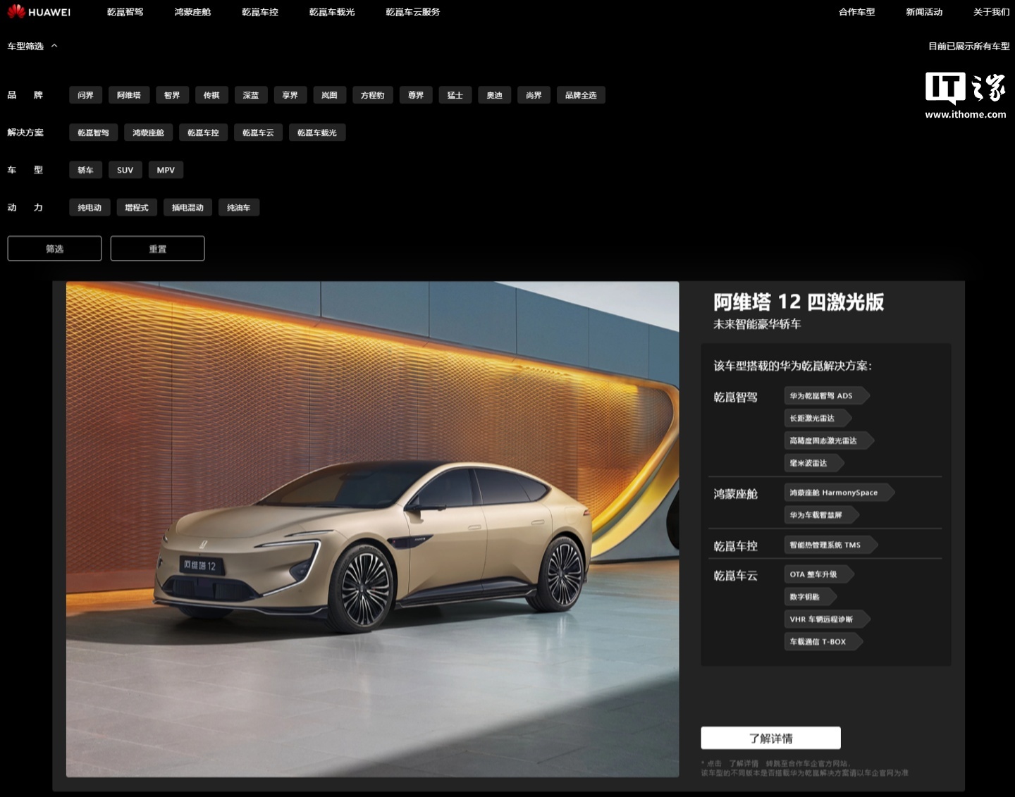 华为乾崑智能汽车解决方案官网显示,乾崑合作内容有乾崑智驾、鸿蒙座舱、乾崑车控、乾崑车云、乾崑车载光,因此销量数据预计包含了阿维塔、岚图、传祺、深蓝、方程豹、东风猛士、奥迪等品牌。