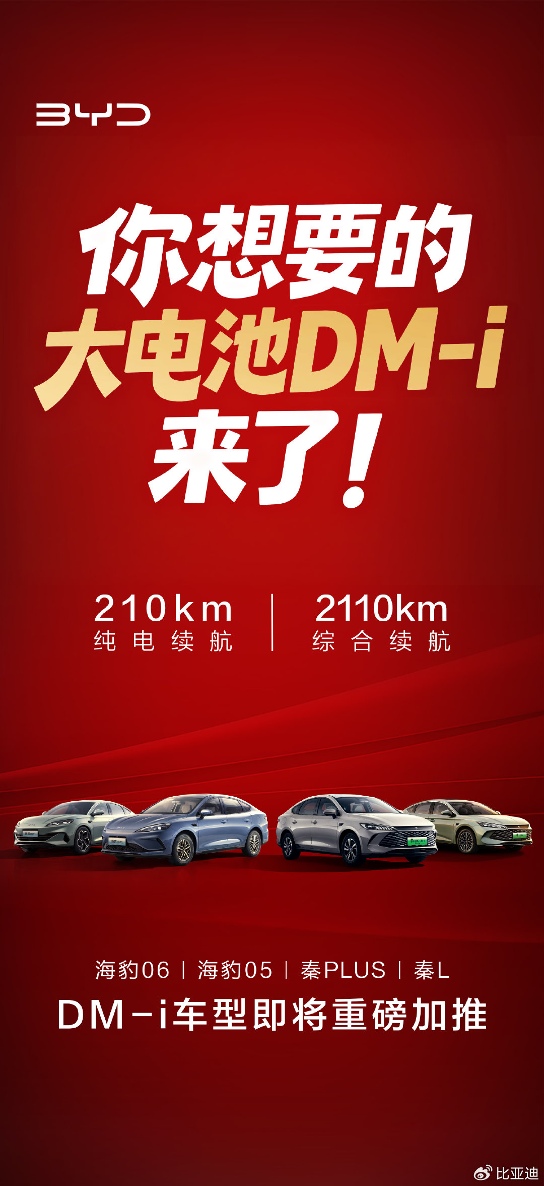 IT之家 1 月 7 日消息,比亚迪刚刚宣布为秦 PLUS DM-i、秦 L DM-i、海豹 05 DM-i 及海豹 06 DM-i 这 4 款车型加推长续航版(爆料显示 1 月 9 日发布),其 CLTC 纯电续航均突破 210km,相比同级混动车型的纯电续航翻倍,号称“可真正实现一周一充的纯电通勤体验”。