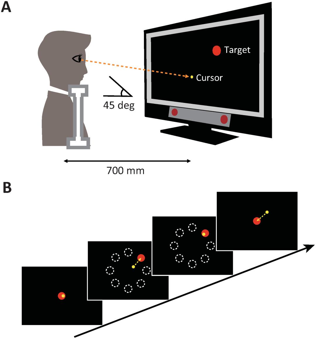 实验室里,研究者让30名年轻健康参与者先盯着屏幕中心,然后随机显示屏幕周边的八个红点之一,要求参与者尽量快速准确地看向并盯住红点,同时用眼动追踪仪把眼球运动记录下来。