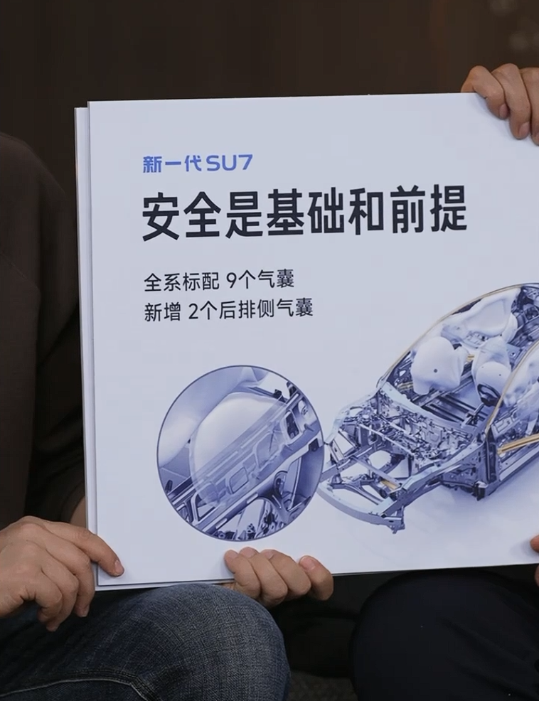 IT之家 1 月 7 日消息,小米创办人、董事长兼 CEO 雷军今日在直播中强调,安全是基础和前提。他透露,新一代 SU7 全系标配 9 个气囊,新增 2 个后排侧气囊。