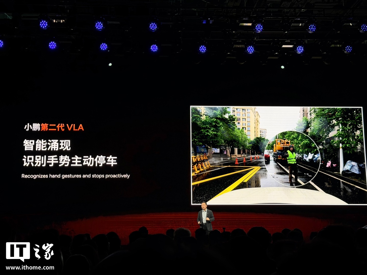 何小鹏还展示了小鹏第二代 VLA 的道路实测,可识别施工占道车辆,自动跨实线绕过;汇入主路可蠕行等待车辆通过;智能识别手势主动停车。