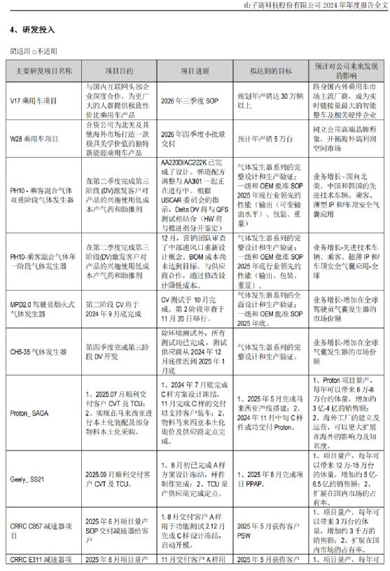 据山子高科2024年财报,在即将到来的2026年三季度与四季度,山子高科分别落地“V17乘用车项目”“W28乘用车项目”,分别规划年产销30万辆以上和5万台。
