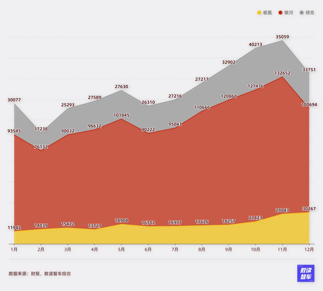 过去几年间,吉利经历了从分到合的过程。从早期几何、领克、极氪等,到12月,极氪完成私有化,吉利开始依托集团化体系实力、进行全域协同作战。