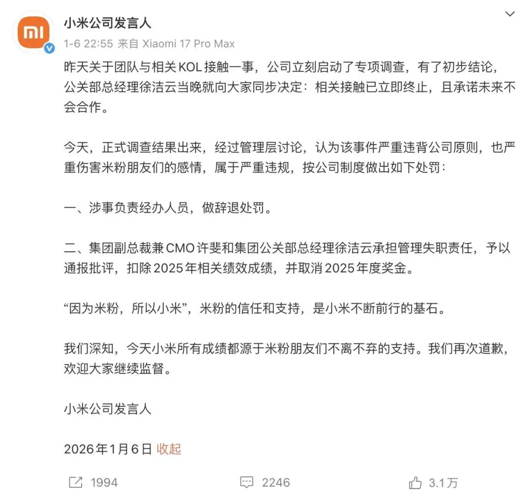 但后来小米在机盖设计、多起安全事故应对,以及最近 KOL 营销投放事件中的处理失当,直接动摇了消费者的信任根基,随之而来就是铺天盖地的质疑。
