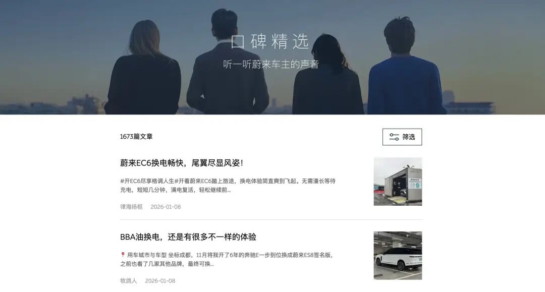 蔚来官网的用户口碑专区