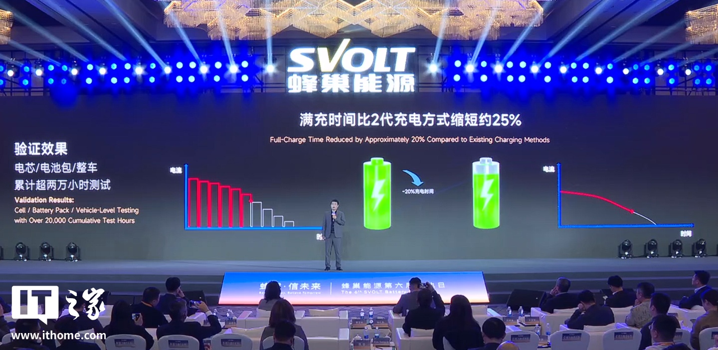 IT之家从发布会获悉,蜂巢能源 3.5 代离子振荡脉冲充电技术已累计进行超 2 万小时测试,将于 2026 年第三季度搭载于客户的全新平台多款车型量产。