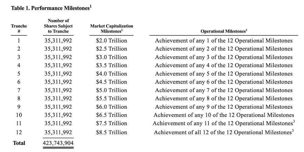 ▲特斯拉薪酬方案达成的部分条件