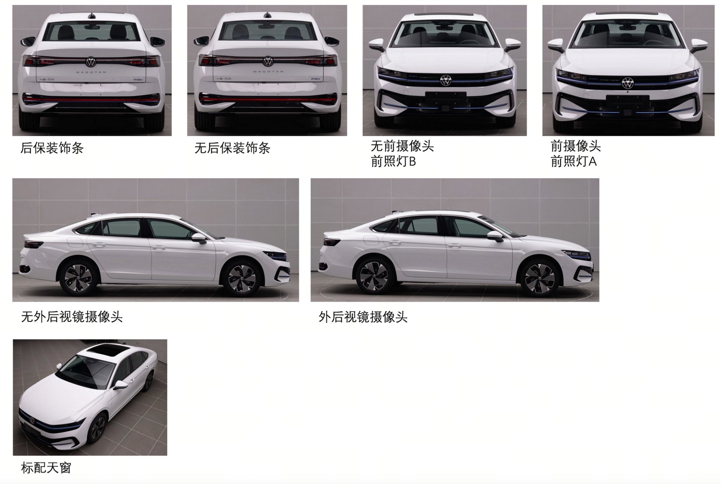 IT之家注意到,全新迈腾 PHEV 基本延续了在售迈腾 B9 的设计,但在细节之处加入了诸多 PHEV 特色标识。车头部分新增蓝色饰条以及蓝色 PHEV 标识,车尾同样设有 PHEV 标识,以彰显其新能源车型的身份。车身尺寸方面,全新迈腾 PHEV 的长宽高分别为 4990 毫米、1854 毫米、1491 毫米,轴距 2872 毫米。作为参考,在售迈腾 B9 长宽高分别为 4990/1854/1487 毫米,轴距为 2871 毫米。